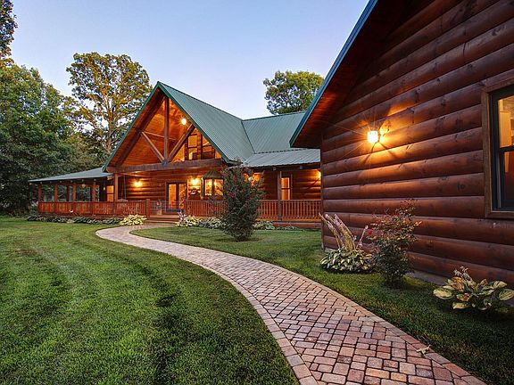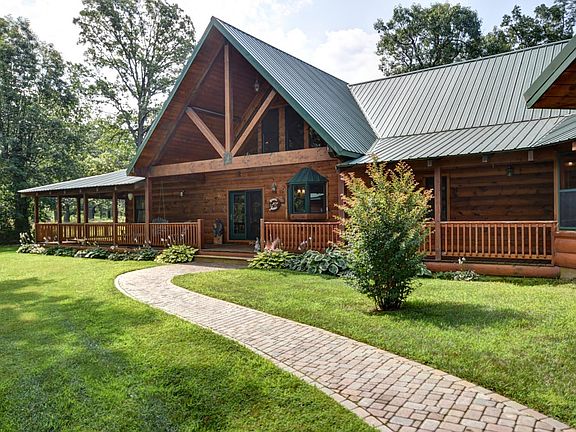 Imagine a luxurious log home set in a sun sprinkled clearing in a 10 acre wood. The solid and impressive structure is entirely wrapped in a 10' wide covered veranda perfect for reflective thoughts while enjoying morning coffee or a tall refreshing drink with family and friends. A warm breeze carries the chirp and chatter of nuthatches and cardinals along with the whizz-zip of hummingbirds. As evening begins to fall, you notice a young doe with her speckled fawn browsing in the nearby undergrowth. You don't need to hold your breath, they won't disappear. Yes, you are really living out your heart's desire in this idyllic setting. You have finally, after all these years, truly come home. (Even better... this dream-come-true has $50,000 of instant equity per appraisal of $434,900 in 11/2012)
