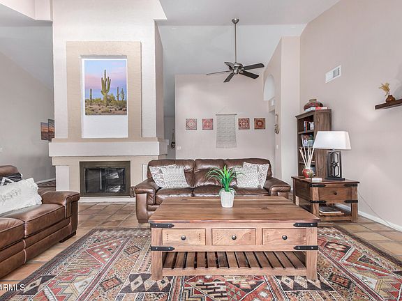 Discover this stunning 4-bedroom home with a 3-car garage and a charming courtyard, offering both comfort and character! Inside, natural light pours through skylights, highlighting the warmth of Saltillo tile floors, vaulted ceilings, and a striking two-way fireplace that enhances both the living and dining areas. The beautifully appointed kitchen boasts a bay window, a wealth of custom cabinetry, stainless steel appliances, a stylish tile backsplash, granite tile counters, and a peninsula with a breakfast bar. Retreat to the spacious main suite, featuring an ensuite with dual sinks, a relaxing soaking tub, and a walk-in closet. Explore your private backyard oasis, complete with a covered patio and a heated salt water pool, perfect for entertaining or unwinding year round. Don't Miss Out!