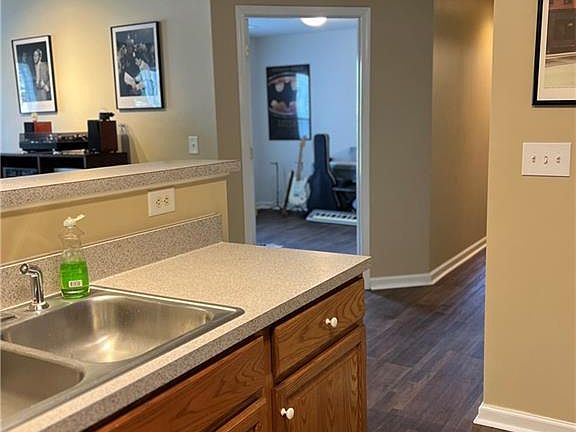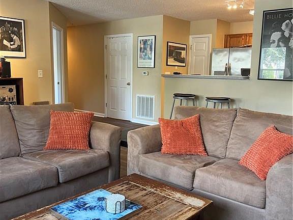 This spacious condo is ready for you! Main floor with private side entry door. New laminate flooring throughout! Built-in shelves by the secondary entry. Gas log fireplace creates a cozy living space that has room for a dining table as well! Open concept with bar seating. Ample light throughout! Plenty of storage spaces with closets and a separate laundry room. See agent notes.