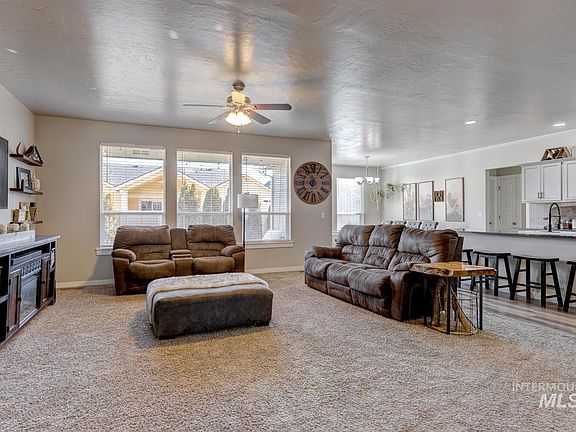 The CBH Homes Monterey 2100. You will feel right at home in this single level property! Great living is achieved with the large primary suite and modern great-room living design. The home has four bedrooms, one near the front entry is great for a den or an office. Open kitchen with black granite counter tops and a pantry. Two bathrooms. Crisp clean lines and a touch of modern decor. A full-sized finished three car garage with room for all of your cars and other items is much needed. Covered rear patio and open trex decking is a wonderful spot to spend the evenings in the spring, summer and fall. The home was built with new high efficiency building codes. Very quiet in this area of the subdivision. Easy access to Ten Mile and Chinden Roads. Close to parks and many places to shop and eat.