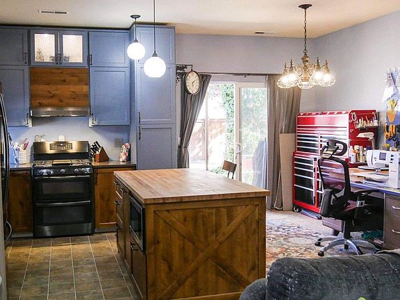 This is a fantastic home. Bright and open with 9ft ceilings, kitchen completely replaced w/gorgeous custom cabinets, some with glass door & lighted, w/pullouts, farm sink, new lighting fixtures & appliances featuring a gas range w/griddle,double ovens, 1 with convection, quartz counter tops. Lg butcher block island,a true cooks kitchen. House is beautiful thru out, 2 bed/2 bath, nice sized front room, dining room opens up onto a patio. Both baths have been updated also. Great walkin closet off master bathroom which had also been updated. . Gas forced air furnace & water heater. Garage is a little bigger at 528 SF with smart opener, workbench, wall storage and above head storage. Completely fenced yard with access from two dog doors. Sprinkler systems in front and backyards. Recessed lighting in the front room, keyless front door entry. Home includes range/oven dishwasher, sm fridge in garage, microwave, washer & dryer & window treatments. Great location close to everything, nice area!