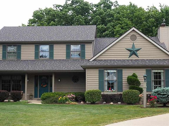 The perfect rural feel tree lined lot so close to everything, West Hamilton Place, tucked away off W. Hamilton Road, cul-de-sac, .948 acres with public utilities. Immaculate two story on finished lower level, side load garage, main floor laundry, gorgeous oversized family room with brick wood burning fireplace, bow wall windows in dining room plus cozy formal living room. Movie room/craft/toy room in lower level plus family room area and game area. Bamboo hardwood floors and tile in laundry and bathrooms. Garage has complete makeover with epoxy floors and wall storage system. New roof in 2014, new exterior paint 2017, new water heater 2018, whole home humidifier and fresh paint throughout interior. 42×18 Stamped concrete patio with 10 x 12 cedar gazebo. The patio also has built in firepit and outdoor bar and grille area which overlooks an 18 x 36 in ground saltwater pool! The pool has an automatic cover for safety and still retain the open feel without fences in the very private lot.