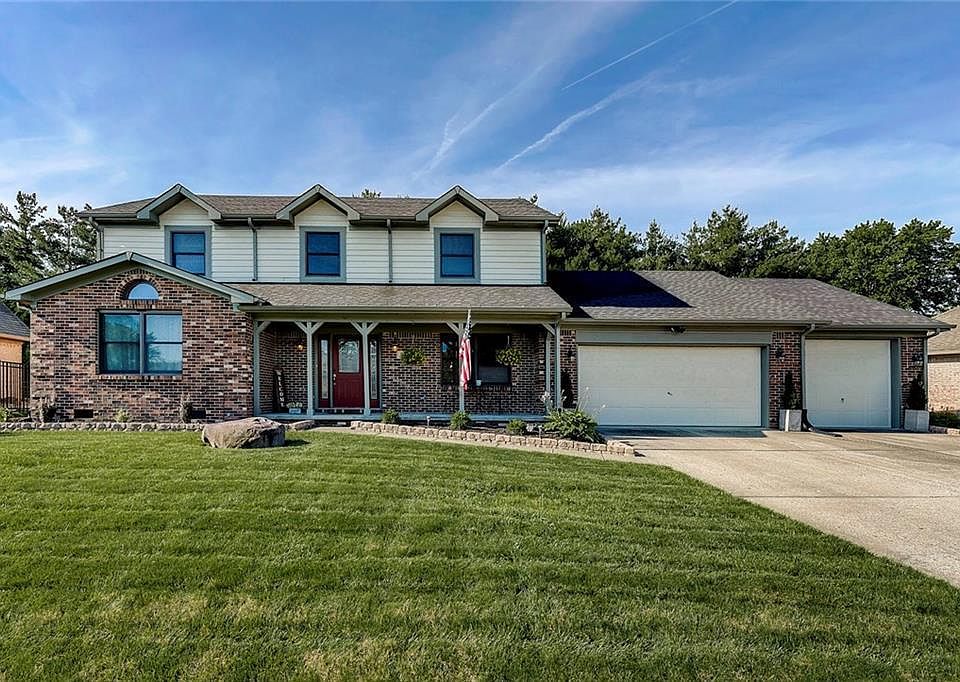 Recently updated, custom built 2 Story 4 BR home in Buck Creek Woods. Updates in 2015 include all new flooring, updates to kitchen including tile backsplash and SS appliances, large composite deck with awning. Home features a t3 car finished garage, brick wrap on exterior, fenced in rear yard. Main floor offers a formal entryway with open staircase, living room with crown molding, formal dining room, family room with brick fireplace and sliding doors leading to outdoor space, good size kitchen with breakfast nook. Upper level houses all four bedrooms. Master has vaulted ceilings, bathroom, walk in closet.