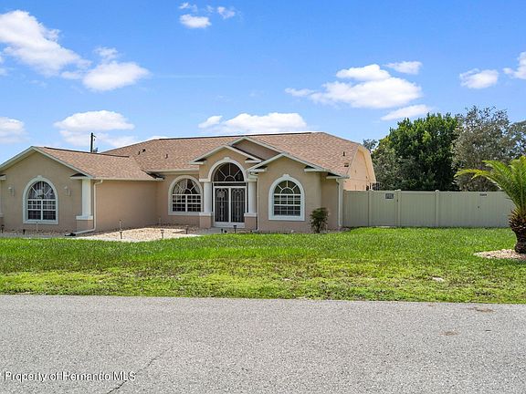 Not one upgrade spared on this stunning 3 bedroom, 2 bathroom, 2 car garage, POOL home located on an oversized corner lot. As you pull in, take note of the beautiful landscaping, palm trees, and screened in front porch. Enter through the double door entryway and be blown away by the gorgeous marble tile, victorian crown molding, vaulted ceilings, and so much more! The sophisticated dining area is complete with a triple pane window and beautiful chandelier. Your living room features an amazing view of the pool, sliding glass doors, and a modern 8 blade ceiling fan with remote control. The kitchen is a chef's dream equipped with stainless steel appliances, recessed lighting, soft close cabinets, granite, a breakfast bar with a built-in sink, decorative backsplash, wood cabinets, and is open to your breakfast nook overlooking your pool area. Enjoy your privacy with a split floor plan and a large master bedroom complete with a chandelier, double sliding doors out to the pool, and dual walk-in closets. The master bath is the ultimate escape for your to relax, equipped with granite, a large soaking tub, marble tiled walk-in shower, and a linen closet. Your guest bedrooms and generously sized with closet space and share a guest bath. Your guest bathroom features granite, a tiled shower with dual shower heads, rock ridge backsplash, and pool access. Head out to your enclosed pool area and enjoy diamond bright finish, an epoxy pool deck, and water heater. Your fully fenced in yard has so much to offer including a 25x15 slab perfect for sunbathing or barbecuing, and an adjoining paved fire pit area. Enjoy an indoor laundry room for your convenience complete with overhead storage. Your garage features a utility sink, workspace, a screen slider, and side door. Brand NEW roof and septic drain field in 2021, NEW water heater 2021, shed new in 2019, fence 2017, pool pump in 2018, and so much more! NO HOA and NO CDD! Make this your full-time home or vacation getaway to escape the cold northern winters. Conveniently located near Weeki Wachee Springs, Buccaneer Bay water park, the IMAX movie theater, all shops, restaurants, hospitals, and not too far from the amusement parks such as Busch Gardens, Adventure Island, Grand Prix, Lowry Park Zoo, and so much more! Don't miss out...schedule your showing today!