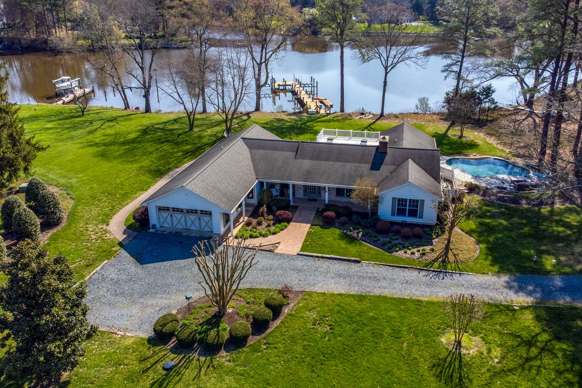 Waterfront rancherUpdated pool equipmentCustom built-in cabinetsCustom solid wood cabinetsStainless steel appliancesPark-like lotReclaimed barnwood oak flooring