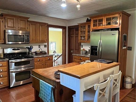 CHARMING... Is all you will say about this one-owner Cape Cod nestled back off the road. Great little mini-farm for a few animals or 4H projects. 3-bdrms, 2.5-bath with full basement. Gorgeous open kitchen-island made from Mike's Farm Market former cheese cutting block, walk-in pantry, gas stove w/ double oven, fridge & microwave stay. Large family area/ dining room are open to the kitchen, main floor updated half bath and 3-season sunroom. Master bedroom w/ walk in closet, built-in closets and drawers, dressing area and laundry chute. Upper bath is STUNNING with tile shower, claw foot tub,2-level granite countertop, heated floor. Upper floor and dining/family rooms have hand scraped engineered flooring. Main level has dedicated sunny office w/ built-in desk. Most doors throughout the house- repurposed from a century home. Lower level family room, additional room currently used for storage, full bath w/shower. Basement & upper stairways are extra wide. Great mudroom w/ large closet, built-in cabinets and bench. Step outside and find a 2-car attached with hot/ cold water, 24 x 24 detached garage w/ single overhead door, concrete floor, workbench and 220 electric, 2-stall barn 18 x 20 has dirt floor, electric and water hydrant, approx. 1-acre fenced pasture. Brick patio w/ fire ring. Covered front porch. Paved driveway with lots of parking area - plenty of room for that RV/boat. Lot is T-shaped and widens out 225' back. Approx. 7+ acres wooded.