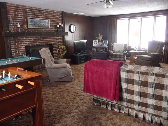 Same Owner for 46 years! Shows pride of ownership. An over 2000 S.F. Ranch on 1.35 ACRE featuring 4 Bedrooms, 2 Fulls Bathrooms (One ensuite with a walk-in Shower), Large 27x19 Ft. Greatroom, which was added in 1981, with a floor to ceiling brick fireplace and a second living space adjacent to the kitchen. All the Appliances stay including a microwave, refrigerator, smooth-top range, dishwasher and the washer and dryer in a separate laundry room. Natural Gas Forced Air Heat, furnace newer in 1998 and Central Air. NEW, Up-to-Date Mound SEPTIC SYSTEM installed by Mel Graber in 2016. New ROOF with tear-off in 2004. WINDOWS have been replaced. 2-Car Garage offers a storage area. 10x12 Shed. Property was recently re-zoned in a flood plain but the Property has never flooded and seller has never paid flood insurance. Water has not come near the house in their 46 years. Price has been adjusted downward to cover many years of added insurance if buyer needs the coverage. Flood insurance is not required with a cash sale.