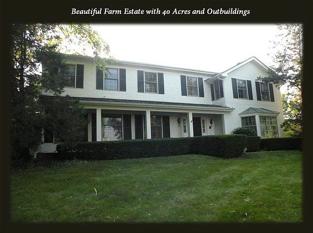 You are charmed from the moment you enter this Elegant Country Estate . It rests on 40 acres with a large swimming pool, Nippersink Creek running thru the back 3 acres. The home has 4 bedrooms(all generous sized rooms) 3.2 baths, nice kitchen, large family Room, 3 fireplaces,1st floor laundry. So many outbuildings, 65x30 Pole barn,60x30 5 stall barn,36x20 Machine shop,Feed Bin 75x30, 2 story Barn w/Basketball ct.