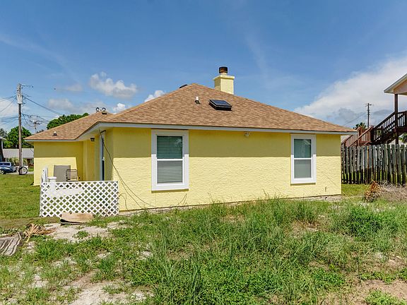 Such a fabulous deal on a great home! LOCATION, LOCATION, LOCATION- 3 blocks to the Gulf's sugar beaches and 2 blocks to Dolphin Boat Launch. Enjoy the relaxed FL casual lifestyle in a private home perfect for retirement, 2nd home or rental investment! Newly upgraded w/ new stucco elastomeric paint, new bath vanities, new tile. LR has vaulted ceiling and wood burning fireplace, sliding doors to outside patio. Great kitchen with stainless appliances, wood cabinets, breakfast bar. New front yard sod, roof is a few years old, ac/just 5yrs old; 2 car garage, NO HOA fees- home is clean and ready for YOU! Septic. So close to beach and lagoon, dining, entertainment, shopping, watersports and just 2 miles to St.Andrews St. Park. Flood Zone X. EASY SHOW! Buyer to verify dimensions. Sold AS IS.
