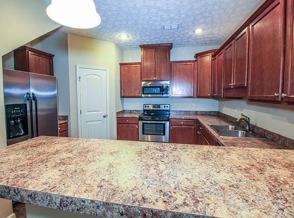 Once inside the home, a foyer leads you into lovely breakfast/dining area the perfect size. The open floor plan allows for a view of the great room from the dining area and kitchen. Pantry in kitchen! Great room boasts a beautiful fireplace, sliding doors lead to back patio. Master bedroom is downstairs, with bath and an additional half bath for guests. 2 additional bedrooms upstairs, with separate baths. THIS ONE WON'T LAST LONG!