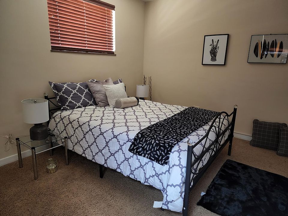 Very large/spacious 1600 sq ft condo, 1st floor, in very safe secured building/condo community, 5 min walk to Ritter Park. Covered off street parking, 2 bedroom 1.5 bathroom very large bedrooms. This condo is furnished with everything you need to get thru your week including bed, tv, towels, cookware, dinnerware, coffee maker, high speed internet, etc. All utilities included. Laundry onsite. This is being rented long term and is perfect for med students and short term stays may be considered for traveling medical professionals who can submit proof of contract with their hospital. Entire condo is $2100 for 1 bedroom 1 office 1 occupant, or per bedroom at $1200 with shared bath. Master bedroom does have its own sink and toilet. Background and credit check required. Pets allowed on case by case basis with additional nonrefundable deposit. No smoking, vaping, candle burning (a candle warmer is acceptable), etc. Background check required.