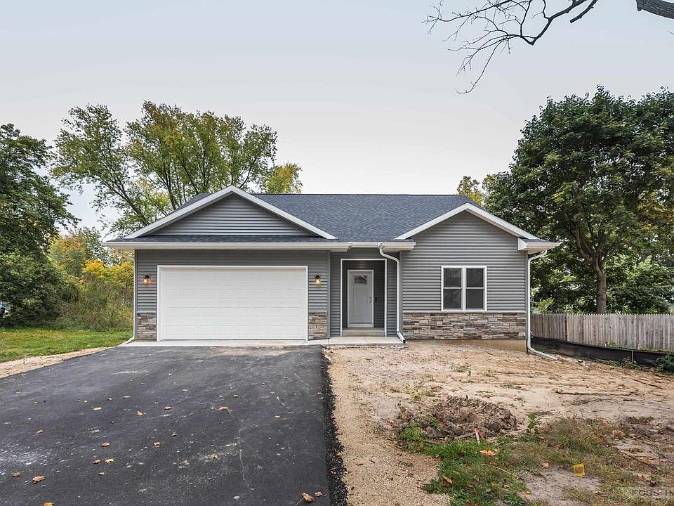 New constructions 3 bedroom, 2 bath Ranch style home with ready to finish basement already studded for add'l bath and 9-foot ceilings. Open floor plan w/ quality features including LVP flooring, vaulted ceilings, gas fireplace w/floor-to-ceiling stone. Other high-end finishes include Quartz counters, crown molding on cabinetry, walk-in pantry, 5 and 1/4 inch white trim & 2-panel arch doors throughout, stainless steel appliances & Ring doorbell. Owner's suite has double vanity, tile shower & walk-in closet.