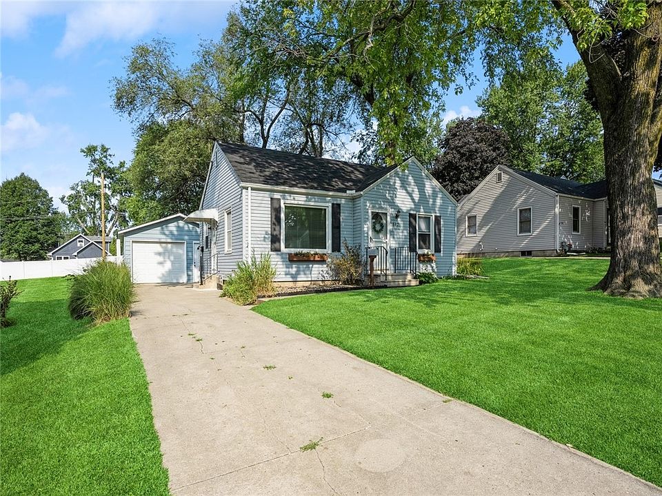 This quality-built Ranch style home is located close to schools, churches & shopping! This 2-bedroom home is virtually maintenance free with vinyl siding on both the home and the single car detached garage. It has vinyl windows & exterior doors that are in great condition, so no worries about replacing windows, siding or doors! The kitchen has ample natural light, cabinetry that is in great condition, beautiful LVP flooring and a view of the mostly fenced back yard. The 10-foot gate was removed previously and could easily be replaced for a fully fenced back yard, which includes a fire-pit! The cozy deck on the back side of the home has a privacy wall on one side and a private entrance into the second bedroom which can be used as an office or den. Both bedrooms have hardwood floors and amply natural light. The full bath is tastefully tiled, has a quality vanity and a linen closet is just around the corner. The spacious living room has a large picture window with faux wood blinds and hardwood floors. The kitchen appliances are included. The basement is a blank slate with potential for future finish! Bring your own washer and dryer and your are ready to go!