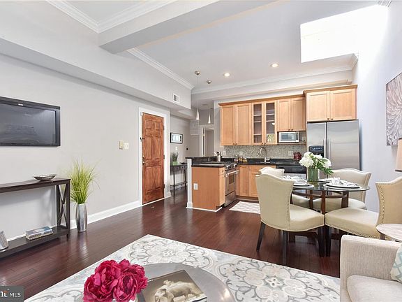 Welcome to this sunlit and spacious top-floor 1-bedroom, 1-bathroom home, offering an open layout, soaring 10-foot ceilings, and modern upgrades. Freshly painted throughout, this unit is part of a charming 4-unit building and features a skylit kitchen with a high-end Jenn-Air gas range, stainless steel appliances, granite countertops, and recessed lighting. The airy bedroom includes ample closet space and a private balcony, while the adjacent bathroom showcases elegant travertine tile and a relaxing jacuzzi soaking tub. With hardwood floors throughout, an in-unit washer/dryer, and an assigned parking space, this pet-friendly home is move-in ready. Nestled on a tree-lined Capitol Hill street, it provides easy access to neighborhood attractions, public transit, and everyday essentials. Owner pays for water. Tenant responsible for electric, gas, and media. This is a non-smoking unit.