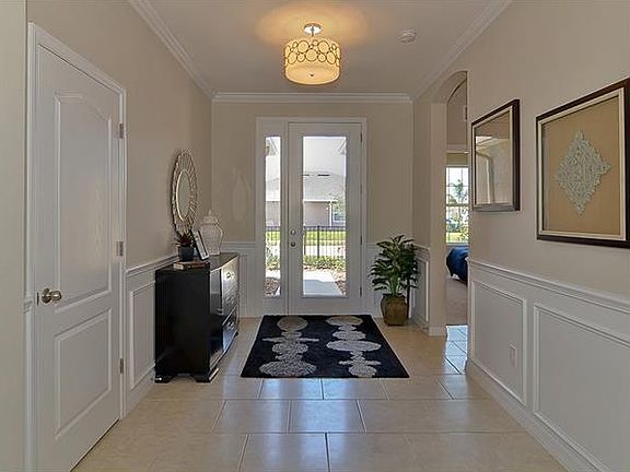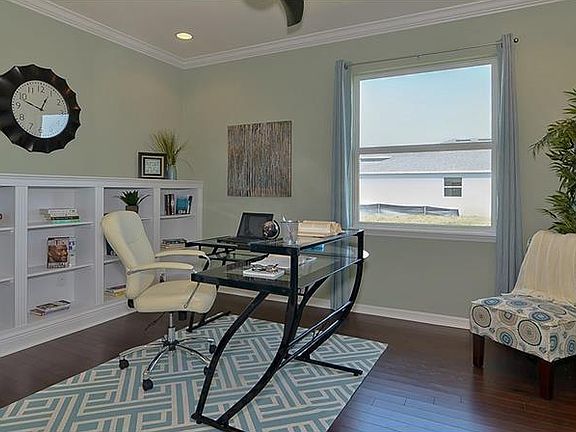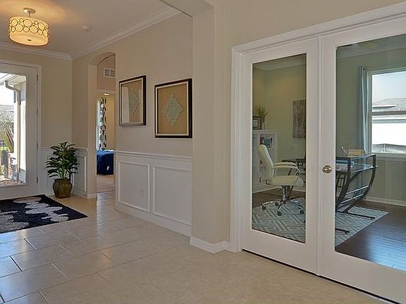 UNDER CONSTRUCTION. This home opens with an oversized entry that leads to a bright, naturally lit kitchen and living room combination. The Master suite is a roomy 14' X 17' with 2 adjacent walk in closets, double vanity, tub with walk in shower. Beautiful open single story floor plan with dramatic 10' ceilings. The owner's suite includes a trey ceiling, his and her closets, and a deluxe bath with double vanity and a separate garden tub and shower. The other 2 bedrooms are also very spacious, one with its own bath and walk-in closet. The Den would make a great office with its double door entrance and central location. Your kitchen is the hub of the home with large island bar with seating for 4, pantry and gorgeous cabinetry accented with granite counters. Your master suite is a private get away with large en-suite boasting walk in shower and soaker tub along with dual sinks and linen closet. 2 Master closets and plenty of room for both a king bed with a private door to the lanai. 2 additional guest rooms both, one with private en-suite and walk-in closet along and a generous sized double door den. The lanai is oversized and boast a half-bath perfect for the future pool.