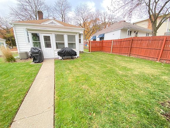 Super cute and extremely well taken care of home with 2 bedrooms, 1 bath, beautiful hardwood floors, vinyl replacement windows, darling kitchen with farmhouse sink, enclosed 3 season back porch, nice sized backyard and a 2 car garage with 3rd concrete driveway parking space and an asphalt paved alley. (Central Air 2015), (Concrete Drive 2016). Absolutely perfect starter or downsizer.