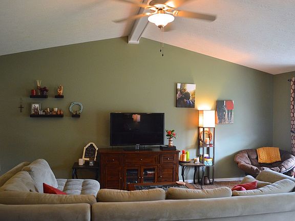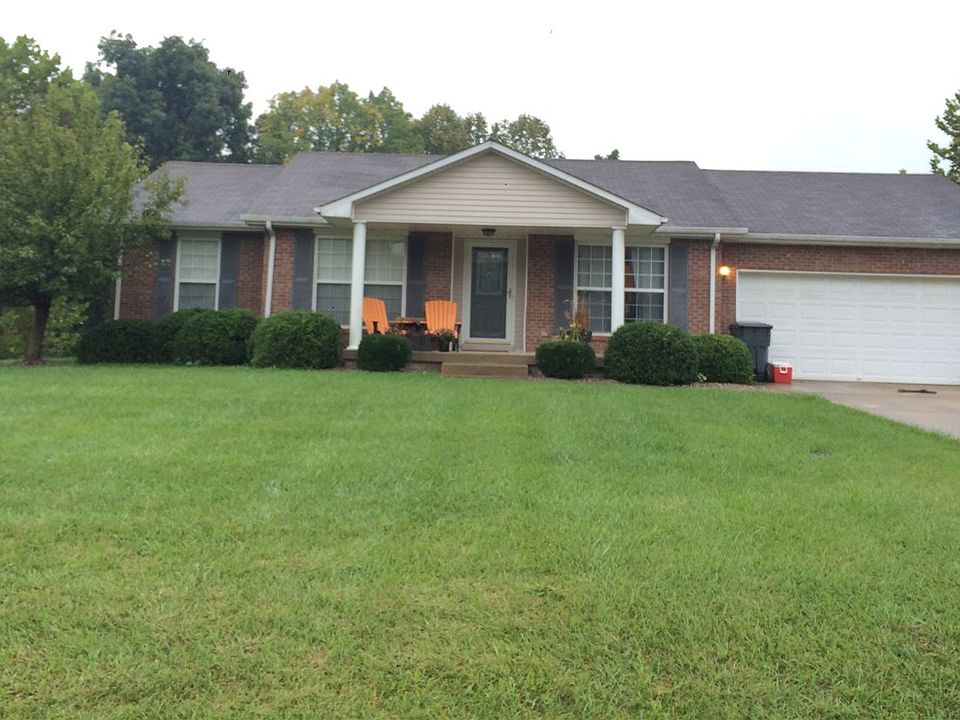 Fantastic 3 bedroom, 2 bath ranch with a huge yard and lots of space between the neighbors. You will love this backyard that goes into the woods and offers lots of room to roam. Step on to the cute covered porch and into the spacious living room with vaulted ceiling. The open floor plan offers a nice kitchen with pass through breakfast bar and a big dining area. The laundry room is between the dining area and the garage entry. Down the hall are two bedrooms and a remodeled hall bath. At the back of the house is the master suite. The deck is off the dining area and overlooks the yard. Located at the end of the street with a cul de sac so no through traffic but lots of peace and quiet. Call today to make this your new Kentucky home!