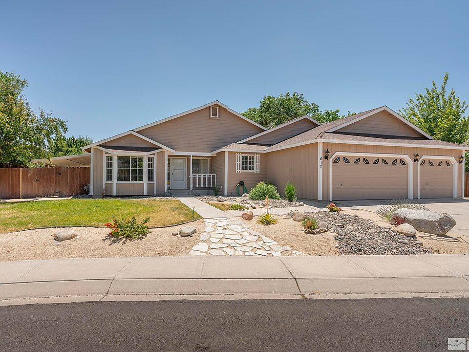 Welcome to 612 Boulder Circle, a beautiful turn-key home in Dayton, Nevada! Boasting 2130 sq ft, 3 bedrooms + office, 2 1/2 bathrooms, 3 car garage and a next-gen detached casita that is approximately 400 sq ft (included in total square footage) and includes a full bath and kitchenette., Features include neutral paint throughout, recently updated vinyl plank flooring, a real fireplace with rock trim, large utility/mud room, high ceilings in living areas, windows that provide ample natural light and so much more! Mature landscaping in the front and back. A move-in ready home with opportunity for you to add your own personal touches to it. Schedule to see it today!