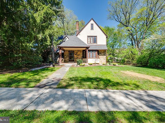 This spacious, 4-bedroom, 2.5-bathroom Tudor style home on a double lot with almost 3,000 sq. ft. of living space has been in the same family for 36 years has so much charm and character! Enter through the front door off of the large, covered front porch into the foyer featuring hardwood flooring, generous closet, sitting area, and deep windowsills that can be found throughout the home. Just off the foyer is the vast living room boasting a bay window, a stone, wood-burning fireplace with brick surround, hardwood flooring, window bench, and crown molding. The formal dining room additionally offers hardwood flooring and crown molding, as well as beautiful built-in shelving and a glass paned door to the side of the home. A convenient half bathroom separates the front living area from the rear family room, offering built-ins and a massive glass slider to the rear patio, yard, and back alleyway. Completing the main floor is the eat-in kitchen with electric cooking, pantry, and door to side covered porch. Make your way to the second floor to discover 4 sizable bedrooms, one primary bedroom with its very own private bathroom, and the largest bedroom featuring exposed wood beams and vaulted ceiling. One of the bedrooms offers walk-up stairs to the spacious attic for plenty of seasonal storage, and another full bathroom completes the second floor. The basement houses the laundry hookups, washtub, and offers a walk outdoor to the yard. Call today for your private showing!