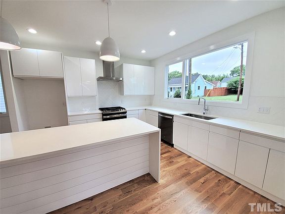 One of a kind contemporary gem within a few short blocks to Transfer Co, Chavis Park, and everything downtown Raleigh. Custom crafted to perfection inside and out! The home features handleless European kitchen cabinets, quartz counter tops, site finished hardwood floors, vaulted 2nd floor ceilings, soaking tub and shower in the master bath, downstairs 4th bedroom that can double as an office, and a professionally landscaped backyard oasis that's great for entertaining or just relaxing after a long day!