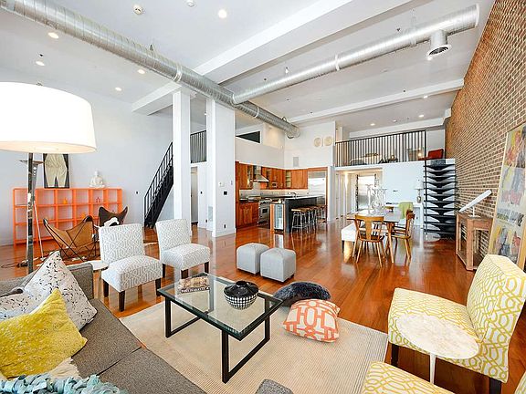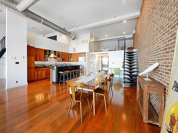 Incomparable duplex loft in the heart of Hoboken! The stylish loft offers keyed elevator into Great Room with 15' ceilings and windows-NYC views-exposed brick, wide plank cherry floors, Gourmet kitchen w/6 burner Viking stove, Sub-Zero ref; wine fridge, ss backsplash, cherry cabinets, black granite. 2 lofted bedrooms, 2 designer baths/1 w/black granite dual vanity, soak tub and stand-alone tub; 2nd offers steam shower and floating steel vanity w/vessel sink-private rooftop terrace w/fabulous NYC views, deeded garage space-simply spectacular home!