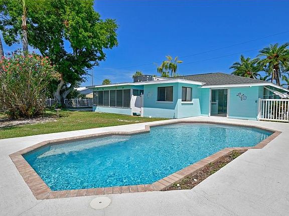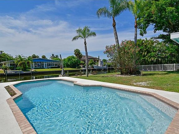 Two Ponytail Palms welcome you into this vintage Key Royale Canal Front home with large re-marcited pool, looking over the 2 benches on the dock of the canal. Handy man special, priced knowing the work needed to update. 3 bedrooms, 2 remodeled bathrooms 1 car Garage, Large Laundry off the back. Room to expand. Come in with open mind and let you imagination run wild with ideas! Anna Maria Is waiting for you, make this into your home! .25 acres, 1369 Sq. Ft. existing home with 1 car garage 1959 Sq. Ft. under roof.