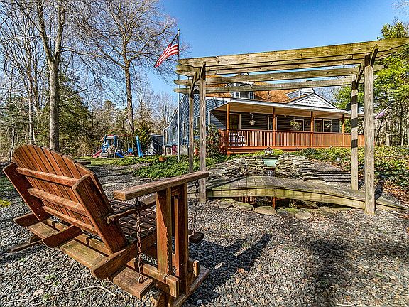 From the minute that you step onto this beautiful wooded property, you're immediately transported to your own oasis. Your tour of this gracious single-family home begins on the expansive front porch. Spend a few minutes relaxing and taking in nature from the porch while listening to the soothing sounds of the front yard koi pond. When you head inside the front door, you'll enter the dining room. Take note of the beautiful wood-look tile that's featured throughout several of the downstairs rooms. From the dining room, you'll find a room with cathedral ceilings that will make an ideal office, sitting room, or library. Next, you'll find the kitchen in this home. It features the same high end wood tile along with stainless appliances, solid surface counters, a tiled backsplash, and a center island. The family room is a great place for relaxing together. Head down the hallway to find the first two bedrooms in this home. A bedroom with a large double closet is available. Next you'll find the master bedroom, featuring an extra room. The possibilities are endless with this room. Use it as a nursery, an office, or a dressing room. Head into the master suite to find an ensuite bathroom, cathedral ceilings, and a large closet. The downstairs is also home to a laundry closet and another full bathroom. Check out the upstairs of this home to find two more bedrooms with generous storage space, along with another full bathroom with a linen closet. Heading back downstairs, take a look out the back door to find a stunning, enclosed three seasons room that is the length of the entire home. Head out the sliding glass doors to find a deck to enjoy the outdoors even more. Enjoy your evenings under the stars under the white cedar pergola and beautiful backyard patio area. This property is also home to three separate outdoor structures. There's a gardening shed, a storage shed with heat and electricity that has been expanded, and a large garage (also complete with heat, water, and electricity) with plenty of space to store whatever you may need. This home is a true gem and a beautiful find with plenty of space for your enjoyment. Take a look at it before it's gone!