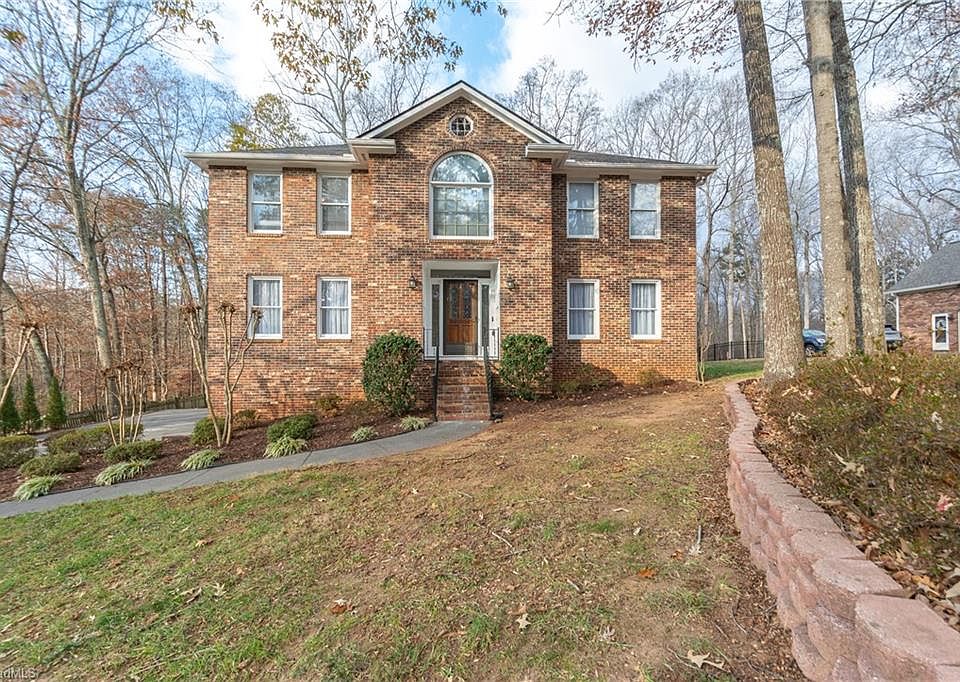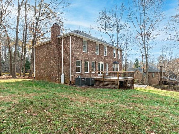 SELLER IS ACCEPTING BACKUP OFFERS. Make this your dream home in the beloved community of Doe Run! Over 3,500 sqft of this generously sized refuge on .78 of an acre in the middle of the Triad. The living room is tucked away off of the entry and could also be used as an office, classroom, or reading room. Great view from the spacious but still cozy den with stately fireplace. The kitchen is complete warm wood cabinets and lots of storage, plenty of counter space for cooking and an island that is the true heart of this home. Off of the kitchen is a spacious deck for entertaining or spending quiet time. When your family needs space from one another, utilize the basement den/game room with a wood burning fireplace. Expansive primary suite with a walk-in closet and attached area for a sitting room, office, or nursery. One of the guest bedrooms has a huge walk-in closet as well! And when summer comes, enjoy the neighborhood pool.