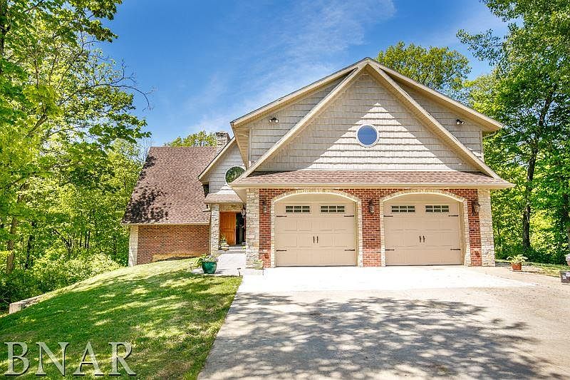 Fantastic customized home! Gorgeous, Remodeled Home nestled in 10 Acres of Wooded/Rolling land w/Lots of Wildlife and Mushrooms and Rasberries! Double, Mahogany Entry Doors leads to Great Room w/Floor to Ceiling, Custom Stone Fireplace (1 of 3 Fireplaces). Gourmet Kitchen w/ fancy Granite and Backsplash, Upgraded, Built In SS Appliances. This Home is Loaded w/Mahogany Floors, along w/ Travertine !! 1st Floor Master Suite w/Duel WI Closets. 3 Additional Lg Bedrooms Upstairs all with their own Baths (1 Bdrm has a loft). Heated Bathroom Floors, Distributed Audio and Surround Sound. Loads of Storage. The Lower Level is Mostly Finished minus flooring. Walk Out Basement. This Property is a "Must See" and withing 15-20 Minutes from Bloomington/Normal. Very motivated seller!
