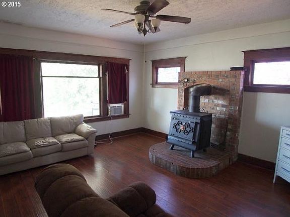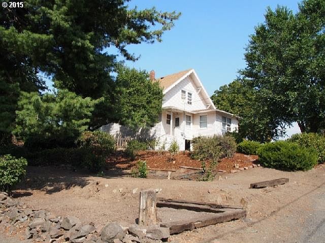 Nice Farmhouse style home with covered front porch, updated kitchen & baths but lots of original charm still intact. 2 spacious bedrooms upstairs with wood floors share a large bath, enjoy views from the large windows. The main level bedroom located at the back of the home gives a little privacy.The 2 car stone garage located at street level has a path up to the house. There is plenty of room for a garden, extra parking or build a shop.