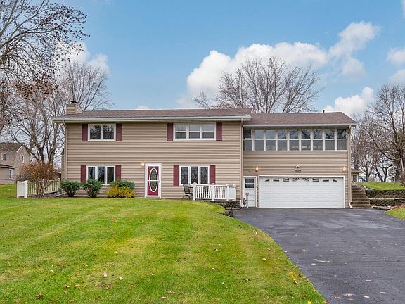 This well-maintained 4-bedroom home is situated on nearly a ½ acre lot, offering plenty of space and character. 4 bedrooms conveniently located on one level. The home features an open floor plan that enhances the flow of the home, making it perfect for entertaining. The bright kitchen includes lots of cabinetry and center island with breakfast bar seating for two. The living room is highlighted by a cozy wood-burning brick fireplace and charming beamed ceiling, adding warmth and character to the space. A lower-level office provides an ideal space for remote work or a quiet retreat. The spacious family room includes lots of windows for great natural light, a large storage closet, and baseboard heating for extra comfort during colder months. The large deck is perfect for outdoor entertaining, while the charming paver patio is great for enjoying your coffee with the morning sunrise. Additional storage space is provided with the large shed, ideal for lawn care equipment. Located within walking distance to Monticello Middle School and a park with a playground and picnic shelter along the scenic Mississippi River. You'll also find shopping and dining options nearby. Easy access to Hwy 25 & I-94 for convenient commuting.
