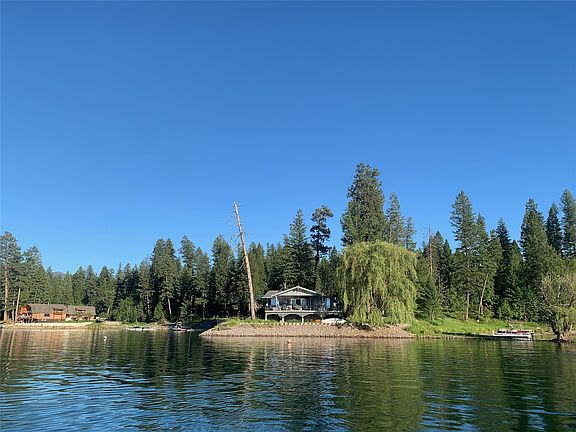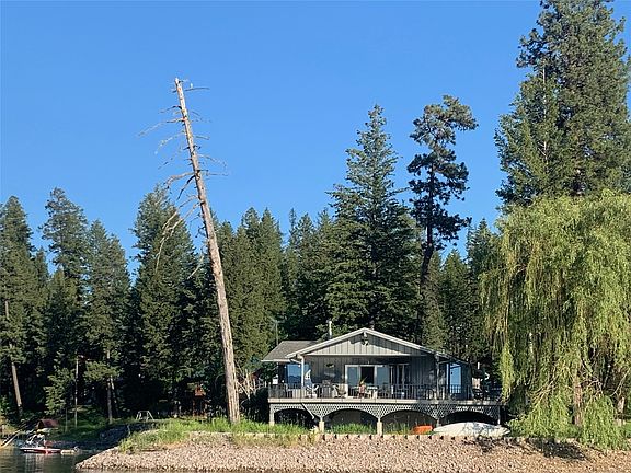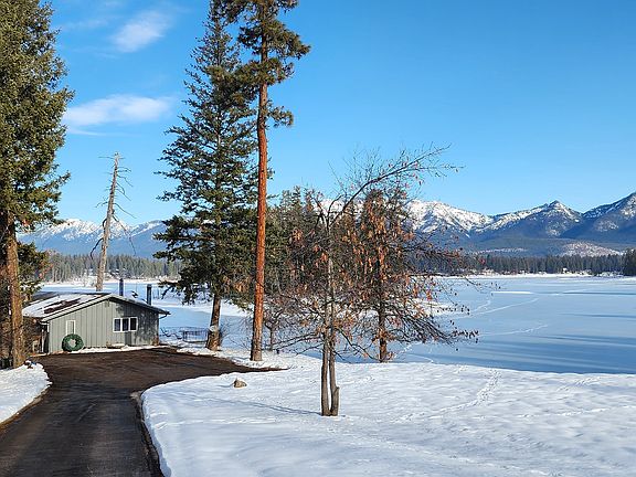 Echo Lake Gem! Located on the SW side of the lake, this unique property faces NE to the Swan Mountains - spectacular views! 2.2 acres with 597 ft frontage incorporates a protected beach and dock in west bay and then extends around the point. Afternoon sun makes this location a great spot for swimming and all water activity. Expansive views include an island and forested shore. Lg open lawn is irrigated and dotted with fruit trees, paved driveway, parking area. Living Room has vaulted windows giving panoramic views of Echo Lk and mountains. Open floor plan creates great communal space with the Kitchen and Dining area. All rooms have lake views! Main floor is 2 bedroom/2 bath. Lower level is unfinished. Deck wraps on west and covered north side. Eastern deck opens off primary bedroom. Year round lake activities include ice fishing and skating right off your property. Near hiking & cross country ski trails. Call Scott Hollinger at 406-253-7268 or your real estate professional.