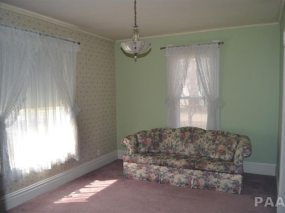 Very charming 2-3 bedroom home on a huge, corner double lot. Original ornate woodwork is in beautiful condition, including very wide baseboards. The extra tall ceilings really add to the charm and expansive feeling. New carpeting is being installed in the living room, dining room and den/3rd bedroom. There are 2 pocket doors within the walls-just remove one trim piece to expose them. Updated vinyl siding, windows and furnace. All appliances remain (work but not warranted). Nice over sized 2 car garage.