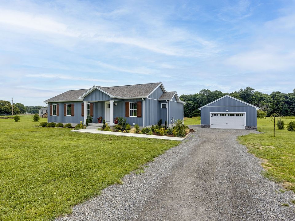 Lovely ranch on premium lot, 2.25 level acres backing up to woods. Massive oversized detached 3 car garage with electric, great workshop space. Convent location just a few min off 52 & 31, close to Gallatin & Bowling Green. Beautiful sunroom serves as second living room. Open floor plan. With dining room. Quartz countertops. Full stainless appliance package including refrigerator. Delta luxury plumbing fixtures. Designer lighting fixtures.Coretech Luxury Vinyl plank floors. Large deck *to be built*.Breathe easy, you're home!