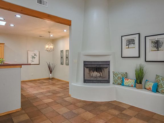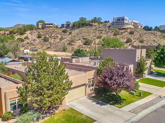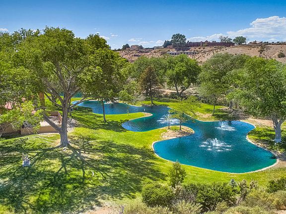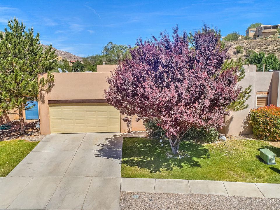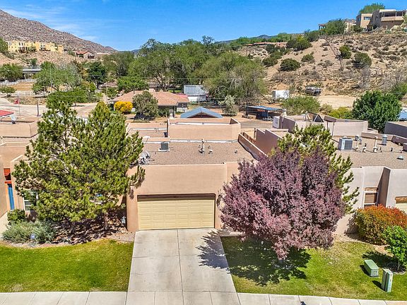 Welcome to the lush green community aptly named Hidden Valley; this is a hidden oasis! All the grounds are maintained by the HOA; and the water utility is paid through the HOA fees. This 4 bedroom 2 full bath well designed home has the perfect floorplan to give everyone their own room with master separated from others. Kiva fireplace feature in greatroom is adjacent to the spacious eat in kitchen with additional seating at the peninsula. Master bath has separate tub & shower with door to east facing walled private patio. Double sliding door from living area also opens onto patio for outdoor dining. 2 Car finished garage. Great area for those who work at the nearby Air Force Base or Sandia Laboratory.