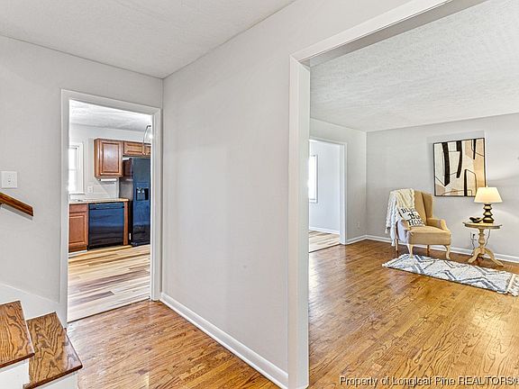 As you move up the stairs you will find 3 bedrooms and 2 bathrooms. Downstairs you will find the laundry closet a large family room with attached office space. Last but certainly not least check out the extraordinary master suite with a full private bathroom and the most amazing walk-in closet! Fresh paint and floors and new siding! Sitting on a large corner lot in the Holly Hills Subdivision not far from Ft.Bragg. This house is priced perfectly and won't last long!!