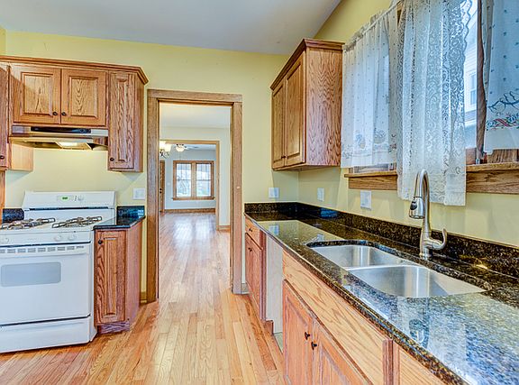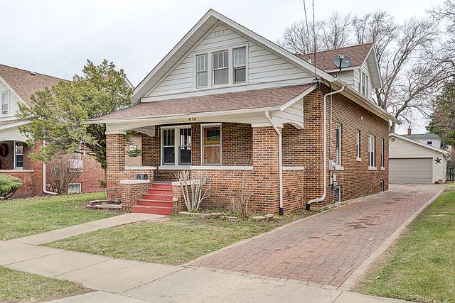 Nicely upgraded bungalow! Charming covered front porch. Hardwood floors throughout entire home. 9' ceilings on 1st floor. Updated lighting throughout. Formal living and dining rooms. Granite kitchen with separate breakfast room. 2 bedrooms and FULL BATH on the 1st floor make the perfect in-law quarters. Upstairs you will find 3 additional bedrooms with huge closets, FULL BATH, office/study area and HUGE storage closet! Full basement, too. Brick patio. Paver brick driveway to oversized 2+ car garage. GREAT location-- walk to Garfield Park and Banana Split, easy to expressways. Don't miss this one!