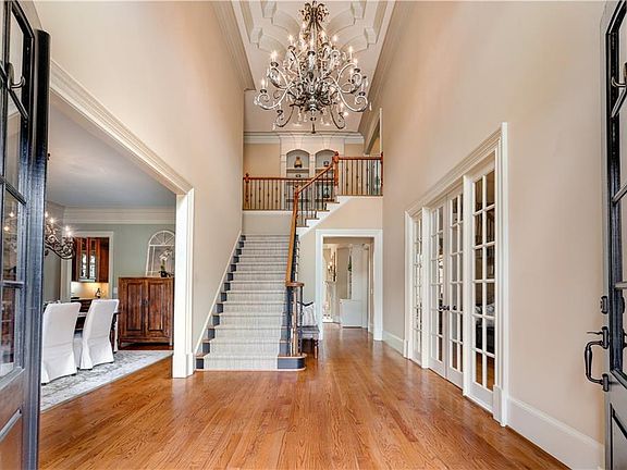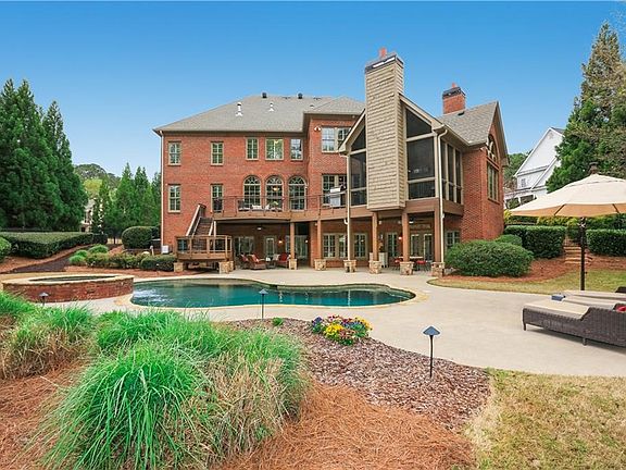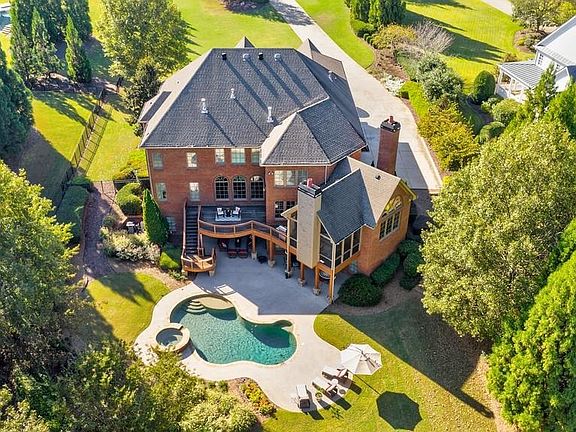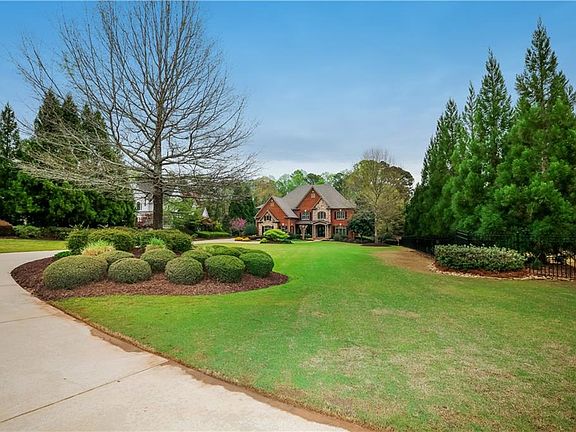 Extraordinary, private, 2 acre plus setting and fine craftsmanship are stand out features of this beautiful brick and stone estate home with saltwater pool and 4 car garage. Tucked away on a private drive in the gated White Columns community, this golf course lot is unique for the neighborhood with equestrian views from the front porch, an expansive backyard with pool oasis, play space, and putting green. A richpaneled study and banquet sized formal dining room flank the impressive front foyer. Coffered ceiling and fireplace grace the formal living room. Everyone's favorite kitchen and keeping room layout! Large center island with Wolf Cooktop, SubZero, Bosch Double Ovens, Hidden Walk-in Pantry. Vaulted beadboard ceiling in keeping room with stone fireplace. Walk out to charming, screened porch with stone fireplace and ipe deck overlooking incredible pool and backyard. Elegant master suite with fireplace, spa bath, and large walk-in closet. Three spacious en-suites and bonus room complete upper level. Terrace level features media, wet bar, gym, and guest suite. Very special home in a remarkable setting.