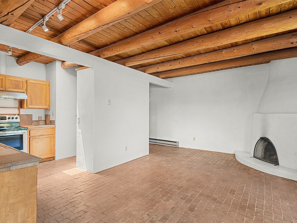 Are you looking for a pied-a-terre or a fantastic rental property? Look no further! This one-bedroom condo is in the perfect location, close to everything including the Railyard, Canyon Rd and the Plaza. The unit has brick floors throughout, stunning wood ceilings with vigas and a gorgeous corner kiva fireplace in the living room. Off the nice-sized bedroom is a private, shaded courtyard. This property has two (2) designated parking spaces. This one will go quickly so schedule your showing ASAP.