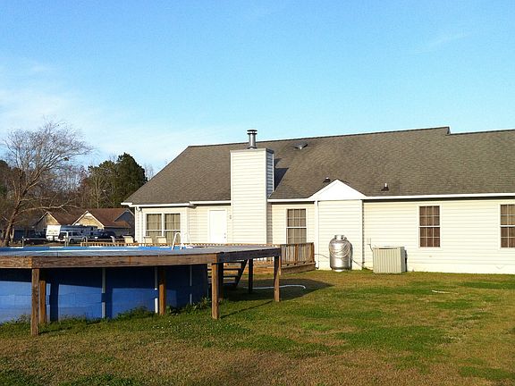 Very well maintained home located outside the city limits of Jacksonville; this home is located in the quiet subdivision of Greystone. This 3 bedroom/2 bathroom is located on a corner lot with fenced backyard with open deck and an above ground pool for those hot summer nights. This friendly home greets you with a covered front porch and long tiled foyer. Enter into the large vaulted family room with gas log fireplace which opens into the breakfast/dining area; connected to the kitchen this
