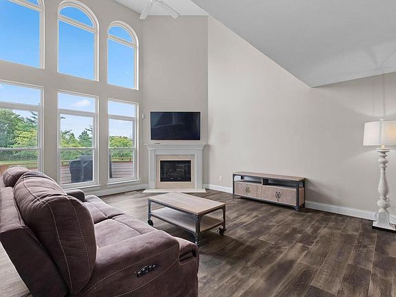 Here's your opportunity to live alongside the 7th green of Winghaven Golf Course, this 2-story townhouse offers a blend of elegance and comfort. The soaring Great Room features a gas fireplace & expansive wall of windows, bathing the space in natural light. Beautiful engineered flooring spans the main level, complemented by neutral fresh paint for a serene atmosphere. The gourmet kitchen boasts solid surface countertops, remodeled white cabinets w/ new hardware, stainless steel hood & appliances, and convenient double ovens. A main floor laundry and half bath enhance practicality, while a deck provides a tranquil retreat overlooking the picturesque course. Upstairs, the vaulted primary suite features a charming plant shelf & an en-suite bathroom w/ a jetted tub, double sinks, and separate tub and shower. The finished lower level adds versatility with bar, sleeping area or office and another half bath. Seller has an assumable loan at 3.125% interest rate, terms & qualifications apply.