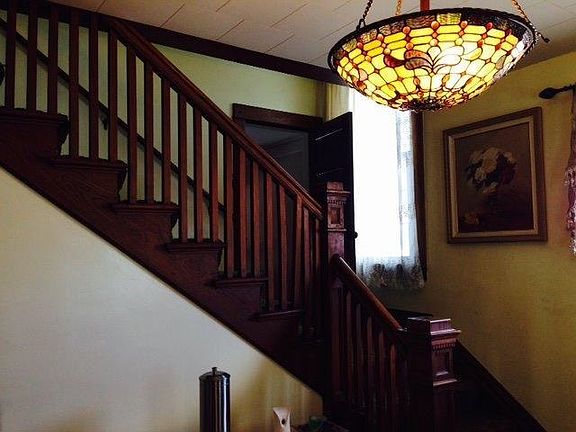 Lots of room in this lovely older home. Four bedrooms and a full bath upstairs. Large French doors and pretty woodwork. Huge oak pocket door. The garage is a brick carriage house with storage above. Private fenced yard and large front porch. Newer roof, some windows and hot water heater.