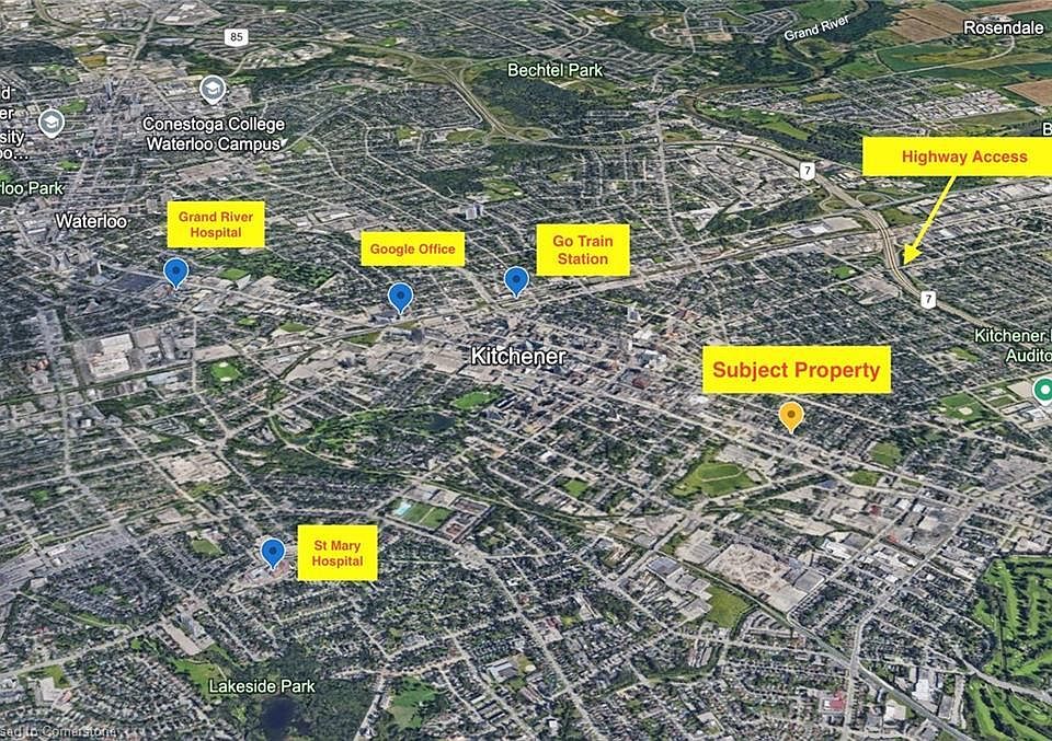 PRIME RESIDENTIAL OR MIXED-USE DEVELOPMENT OPPORTUNITY ON A 12,163.21 SQFT LOT WITH SGA-2 ZONING IN DOWNTOWN KITCHENER. SGA-2 zoning permits moderate-density, mid-rise developments—allowing for up to 8-storey residential buildings, modern townhomes, or mixed-use commercial and residential projects. 612 King St E, Kitchener, N2G 2M1, featuring 6,006 sqft of land (MLS 40760139), is being sold together with 602 King St E, Kitchener, N2G 2M1, which adds an additional 6,157 sqft (MLS 40759333). The 612 King St E property includes a detached 2-storey building with commercial space on the main floor, currently operating as a shisha lounge and bar, and a 2-bedroom, 1-bathroom apartment above. Situated in the heart of downtown Kitchener, this high-exposure site is surrounded by essential amenities including restaurants, the Farmers Market, Conestoga College’s downtown campus, schools, hospitals, and the Google office. A rare and strategic opportunity to invest, redevelop, or build in one of the fastest-growing urban hubs in the region.