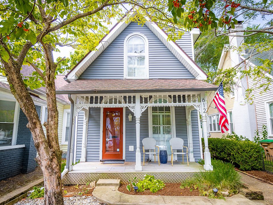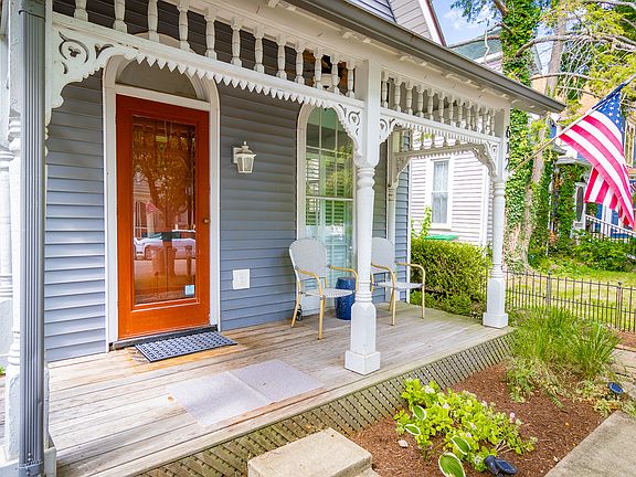 Here is your opportunity to own this beautiful historic home only steps away from the public library. This 2 bed/2 bath home welcomes you with an inviting covered front porch. With an abundance of natural light, the main level offers spacious living and family rooms with hardwood floors, an electric fireplace, large eat-in kitchen, an oversized mud/laundry room and a full bathroom. Upstairs you will find your 2 bedrooms connected with a jack-and-jill bathroom. Outside discover your large deck and fully fenced backyard perfect for entertaining and a 2-car detached garage. Walk to downtown entertainment, restaurants and shopping and parks!