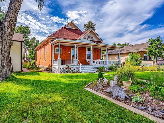Built in 1900, this brick 2-story home blends timeless charm with modern updates and major savings from an owned solar system, meaning no lease and low monthly electric bills. Inside, the main level features a bright living room with bay window and built-in cabinets, a full bath with claw-foot tub, a main-level bedroom, and a spacious family room with a wood-burning fireplace. The updated kitchen includes a gas range, stainless steel appliances, a center island, and a convenient butler's pantry. A generous laundry room offers flexible use as a craft area or even an additional bedroom if desired. Upstairs you'll find two more bedrooms, a second full bath, and a loft-style family or office space. The partial unfinished basement provides extra storage. Outside, enjoy a fully fenced yard with mature trees, grass lawn, and a covered front porch ideal for relaxing. The oversized 2-car garage includes both main and upper-level workshops—perfect for projects or hobbies. With central air, owned solar, and easy access to the Riverwalk, Mineral Palace Park, and Union Avenue, this home delivers comfort, character, and real energy savings in a convenient central Pueblo location.