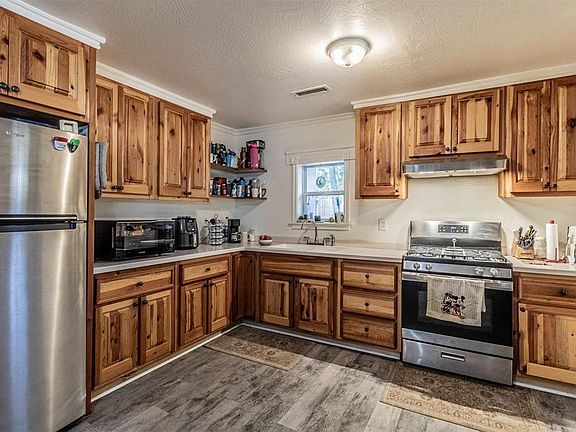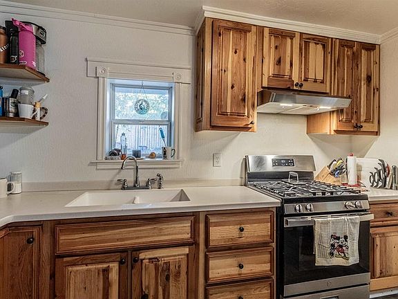 Charming Restored 1936 Home in the Heart of Aztec This beautifully restored 2-bedroom, 1-bath home sits on a desirable corner lot in town, blending historic character with modern updates. Thoughtful craftsmanship shines throughout, including custom hand-built kitchen cabinets created from the home’s original 1936 old-growth flooring—a stunning nod to its heritage. An interior load-bearing archway, along with completely updated plumbing and electrical, ensures both style and peace of mind. Step outside to a private irrigated backyard, complete with planting beds, a tranquil garden pond, and a welcoming patio perfect for entertaining or quiet evenings. The xeriscaped front yard adds beauty with low maintenance, while the carport and paver patio provide convenience and outdoor living space. Located just a short walk from the Downtown Historic District, this property offers the rare combination of charm, functionality, and location. Truly a unique Aztec gem that must be seen to be appreciated.