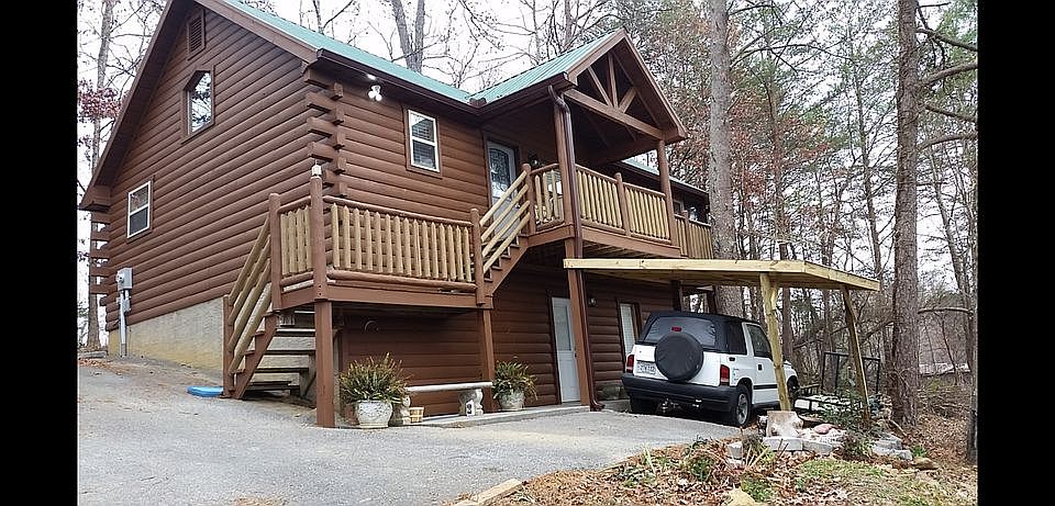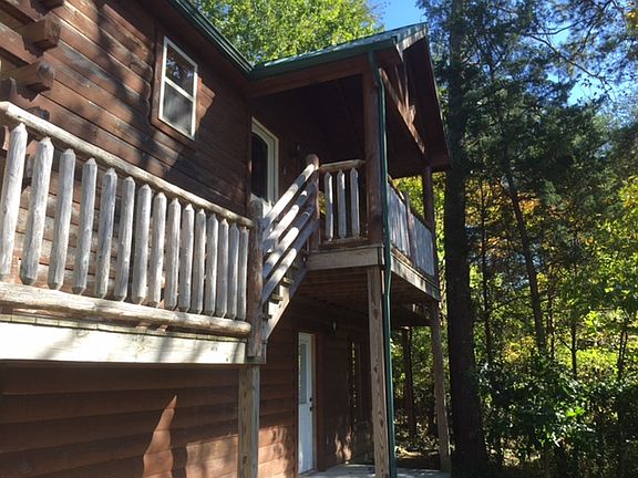 Very charming cabin in a super location. Easy access yet very private. Nestled on a private .95 acre lot , you will absolutely love this cabin. The interior has a cathedral ceilings with exposed beams and log walls. There are plenty of windows in this open floor plan. The lower lever features a very large bedroom. Plenty of opportunity to add a pool table if so desired. Custom touches throughout add to the charm and whimsy of the cabin. Jetted tub in house.