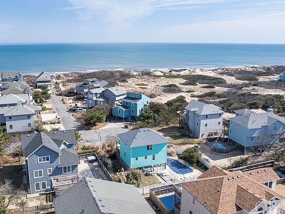 LOCATION LOCATION LOCATION! This 3 bedroom 2.5 bath home in Corolla with a private pool and fenced yard is on a direct beach access and only 5 homes away from the beach! Ocean views abound on the top floor, with views from the top deck and from the main living space. Brand new kitchen cabinets and countertops in 2021. Bathroom updates in 2021 including new laminate floors, vanities, and toilets. 2020 exterior painted and some siding replaced. 2017 all interior painted, all new or updated furniture, new light fixtures, new artwork. Consistent rental income producer. X flood zone so flood insurance is not required. This "sunsational" home is not just super close to the beach, it is in a prime location that is convenient to grocery, restaurants, shops, golf and other fun beach activities. This Corolla home comes fully furnished and with 2023 income already on the books. Two very strong rental projections are available, one at 66k from a weekly management company and one for 80k+ from an airbnb/vrbo manager.
