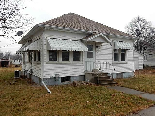 Solid move-in ready 2 bedroom Emden, Illinois bungalow style home situated on an expansive 120X150 lot! Step inside and prepare to feel right at home with the hardwood flooring found throughout much of the interior. The main floor features a neat 9X13 foyer area with ample natural light, generous living room with great floor space in addition to a corner built-in, spacious eat-in kitchen complete with dishwasher, range/oven, and refrigerator to remain, two nice sized bedrooms, and a full hall bath. Property also features an enclosed back porch, breezeway that connects the home to the two car attached garage, full usable basement, maintenance free vinyl sided exterior, vinyl windows throughout, architectural roof, newer furnace, central air conditioning for those warm summer months, in addition to a large rear machine shed -- great for those in search of abundant work/storage space! For only $45,000, you can make this solid well maintained two bedroom small town home yours -- large lot, basement, attached garage, machine shed -- call your agent of choice today to view 612 E. Market Street, Emden -- own for less than rent! NEW septic system installed in 2015!