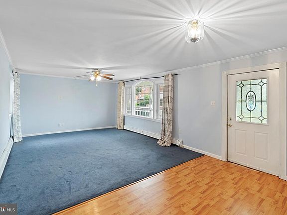 Here is your opportunity for a nice size 2 bedroom, 2 bath single home in a great location in Marcus Hook across from Mickey Vernon Park! The home features a nice covered front porch. Inside on the main level there is a large living room with picture window, crown molding, ceiling fan and laminate hardwood floors in a portion of the room. There is a formal dining room with french doors to side patio. The eat in kitchen features a double bowl sink, ample cabinet space, electric stove and vinyl floor. There is also a mud room/ laundry room via the rear door as well as a full bath on the main level with stall shower. The 2nd floor features a large primary bedroom with walk in closet, additional bedroom on the 2nd level and a full hall bath with jetted tub. There is a walk up/ floored attic and bonus room great for storage on the 3rd level. The basement is partial and unfinished. In the rear there is a 1 car garage converted into a partial storage space and partial finished area as well as a shed and 1 car driveway. This home offers a lot of opportunity although does need some TLC throughout which is reflected in the price. Do not delay, schedule your showing of this home today!